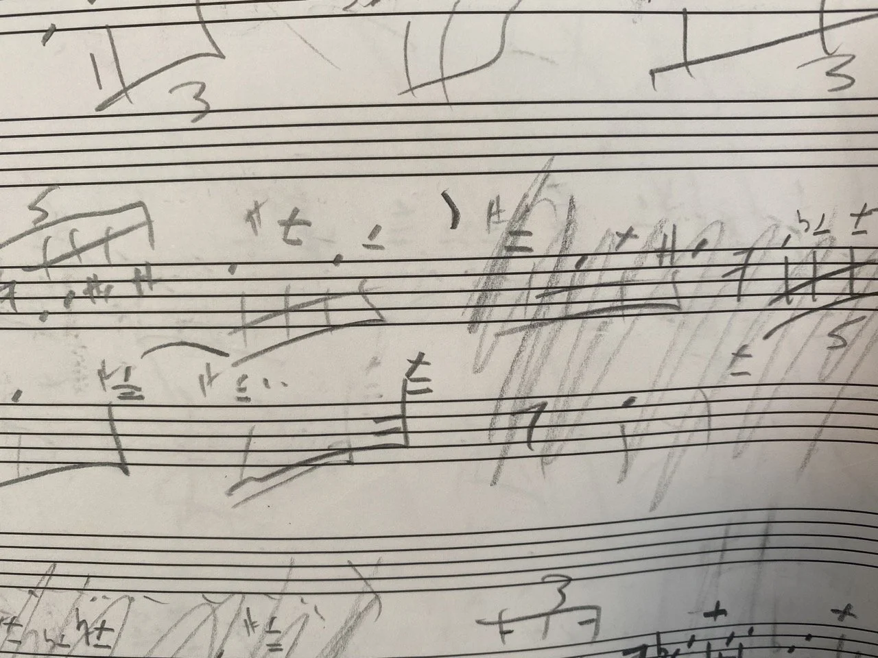 In this state I usually have difficulty keeping track of where I am - I’ll glance up at the page only to see violently crossed out material with a large arrow pointing me in an entirely different place on the score. Or maybe something circled with a note to myself floating above. Pencils fall off the keys, page turns become a nightmare; I try my best to keep the music going and match or guess the best intentions.